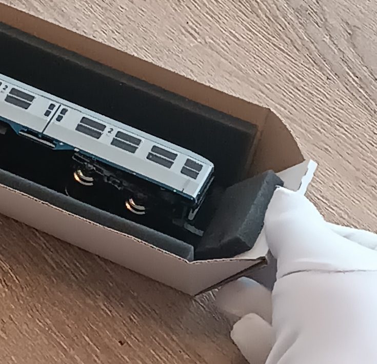 Zusätzlich bekommst du einen kostenlosen Schaumstoffblock, der vielseitig einsetzbar ist. Dieser kann sowohl als Puffer als auch als Trenner genutzt werden, um deine Waggons während der Lagerung zu schützen oder zu verhindern, dass sie aneinanderstoßen, wenn du 2 kürzere Waggons einlegst.